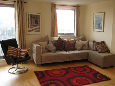 Stylish, modern apartment, accessed by lift or stairs from a light, airy lobby.