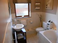 Double ended bath with shower over bath. WC and basin.